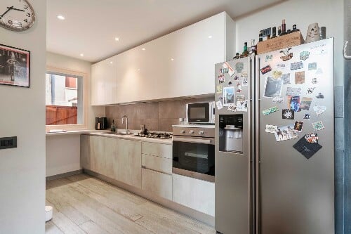 Non dimenticare il garage doppio dotato di presa per caricare la macchina elettrica e un ripostiglio utilizzabile come deposito.