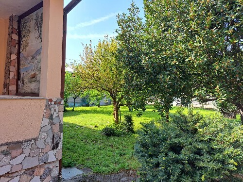 L’abitazione è composta da un accogliente portico d’ingresso, una cucina funzionale, un luminoso soggiorno, un pratico disimpegno, tre camere da letto e un bagno. Una scala interna conduce al piano interrato, dove è presente una comoda zona lavanderia e una cantina, mentre al piano superiore si trova un ampio sottotetto non abitabile. Un ripostiglio esterno e un ampio box completano la proprietà.
