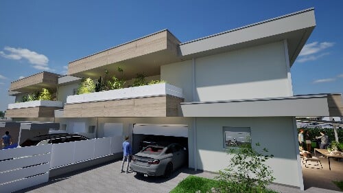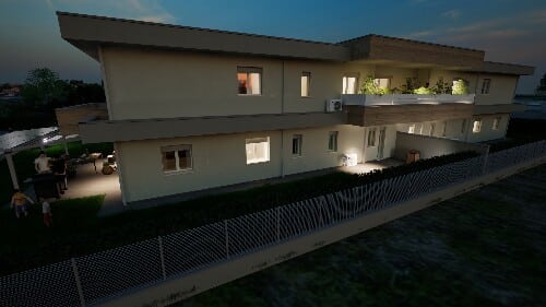 Ubicato nella nuova zona residenziale del paese, in contesto di sole 5 unità abitative, riservate e indipendenti, proponiamo Quadrilocale in classe “A” di 120 mq. al piano primo, con graziosa e riservata loggia coperta. Ingresso pedonale e carraio indipendenti. Ampia zona living con cucina a vista separabile, con accesso a terrazza e loggia coperta. 3 camere da letto, doppi servizi con lavanderia, garage all’ americana e posto auto di proprietà. L’ unità immobiliare, progettata per garantire un basso consumo energetico, è dotata di riscaldamento e raffrescamento a pavimento con pompa di calore e accumulo acqua sanitaria, impianto fotovoltaico 3 kw e ventilazione meccanica controllata con deumidificatore. Sono inoltre previsti: basculante sezionale motorizzata, serramenti in PVC, tapparelle elettriche, zanzariere, videocitofono, antenna digitale terrestre e satellitare, predisposizione impianto antifurto e addolcitore acqua.